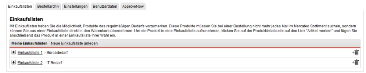 Abb. Einkaufslisten: Mercateo bietet seinen Benutzern die Möglichkeit, Produkte, die zukünftig angeschafft werden sollen, auf Einkaufslisten vorzumerken.