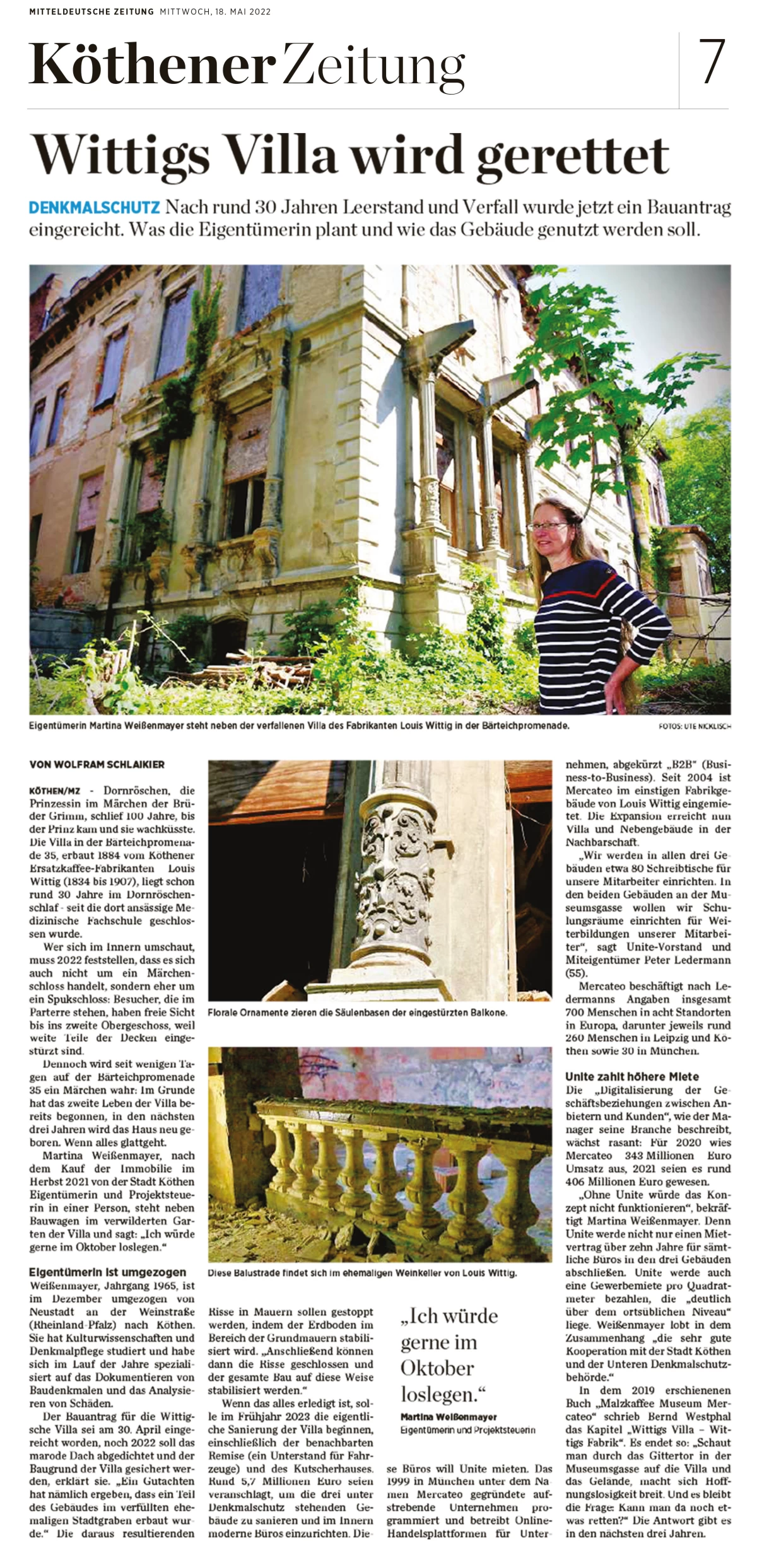 Quelle: Wolfram Schlaikier, Mitteldeutsche Zeitung, Ausgabe Köthen vom 18. Mai 2022
