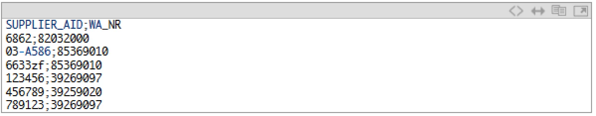 The row with the header SUPPLIER_AID;WA_NR is mandatory information.