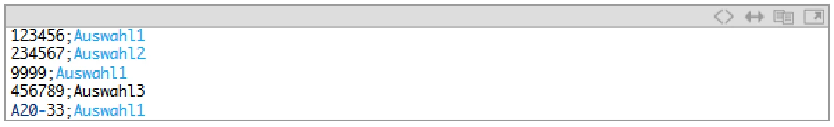 You can then also check the CSV file in the text editor. The following illustration shows a whitelist with just item numbers: