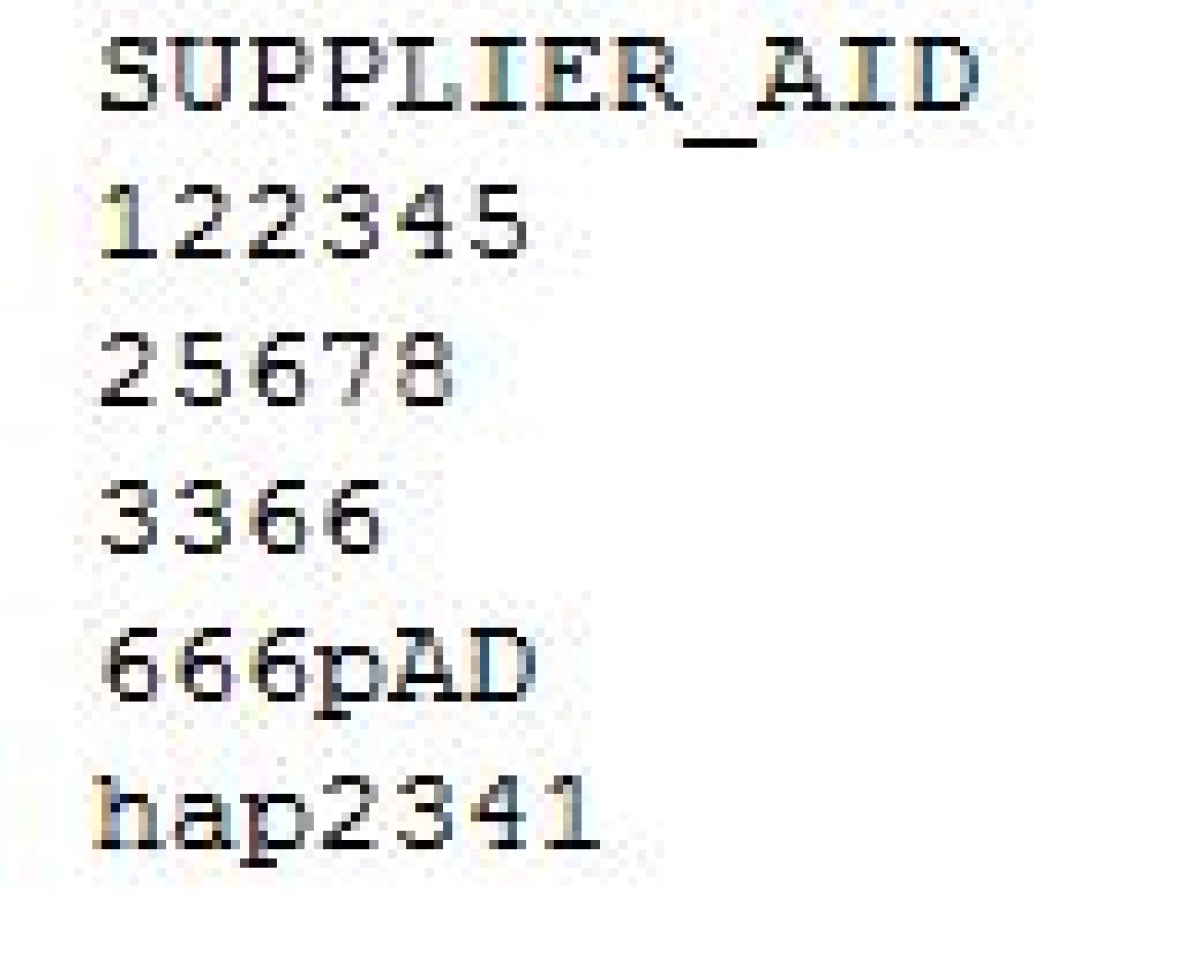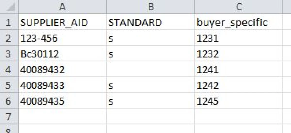 Copy all item numbers from the test result above into the first column (under SUPPLIER_AID).Please note:Should you have item numbers preceded by 0, format the previous column as “Text”.