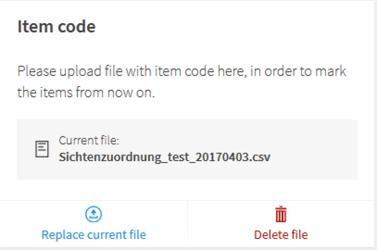 … you have the opportunity to include the item labels in the system via CSV file using catalogue management. You can find more information under the following points.