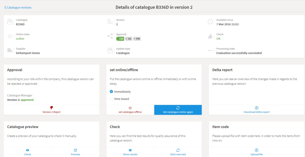 Filter for the desired supplier in Mercateo catalogue management and select the most current version of the catalogue.