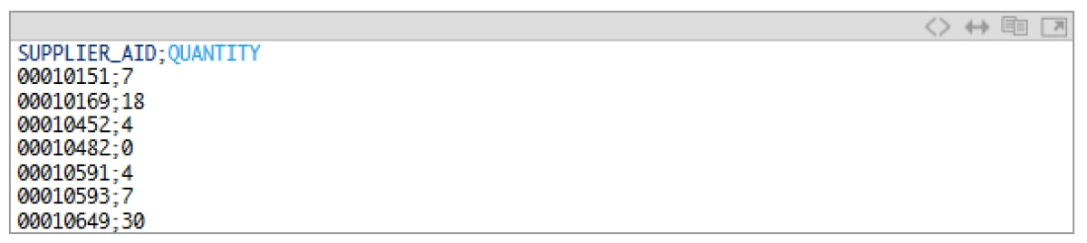 The header (SUPPLIER_AID;QUANTITY) in row 1 does not have to be stated.