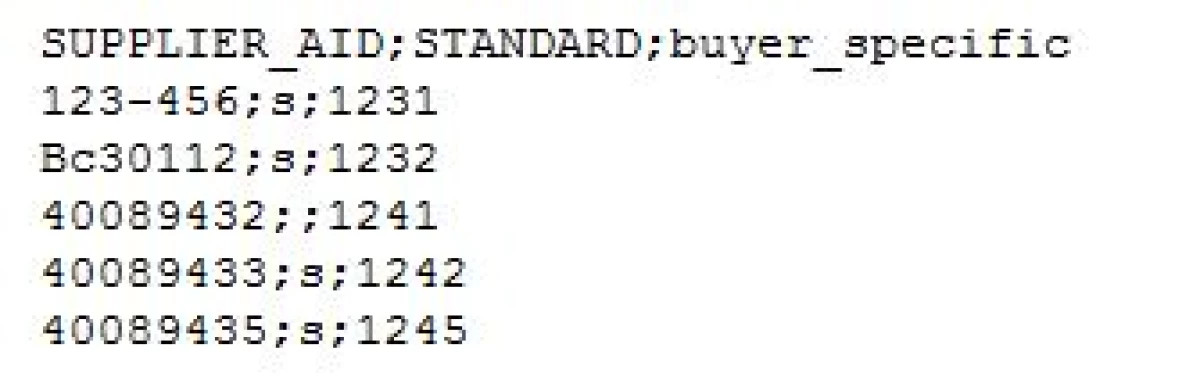The column “SUPPLIER_AID” contains the item numbers for your supplier. These numbers must correspond to the item numbers from the catalogue.