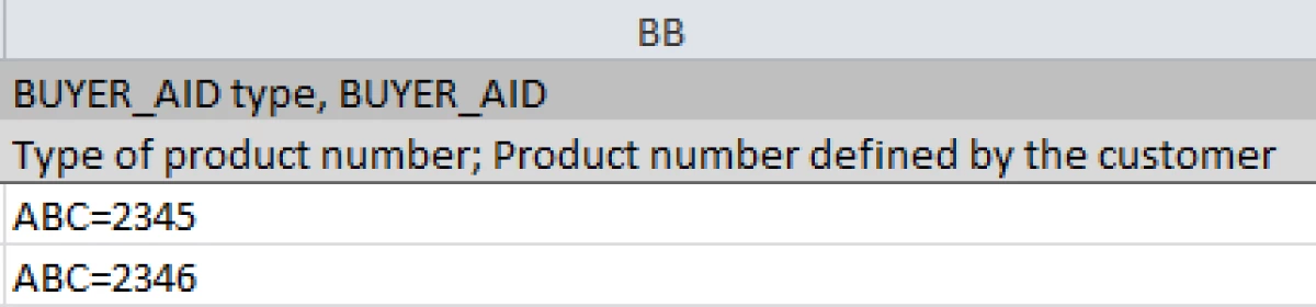 The BUYER_AID is entered in column BB. Multiple labels are possible. The values are saved according to the following scheme: