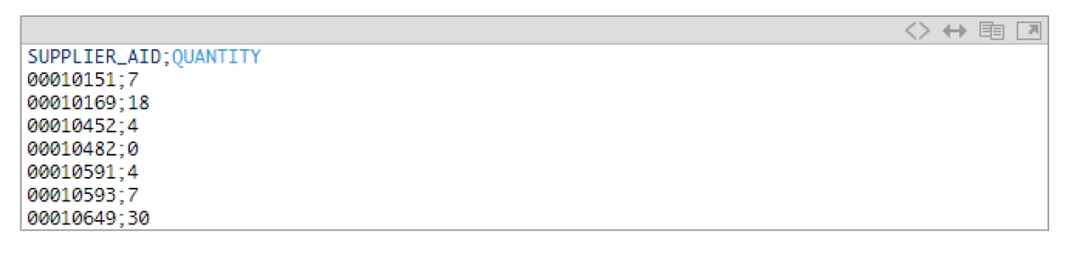 The header (SUPPLIER_AID;QUANTITY) in row 1 does not have to be stated.