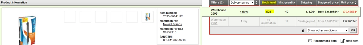 To activate the stock level query, please contact your supplier supervisor or catalogue manager at Mercateo.