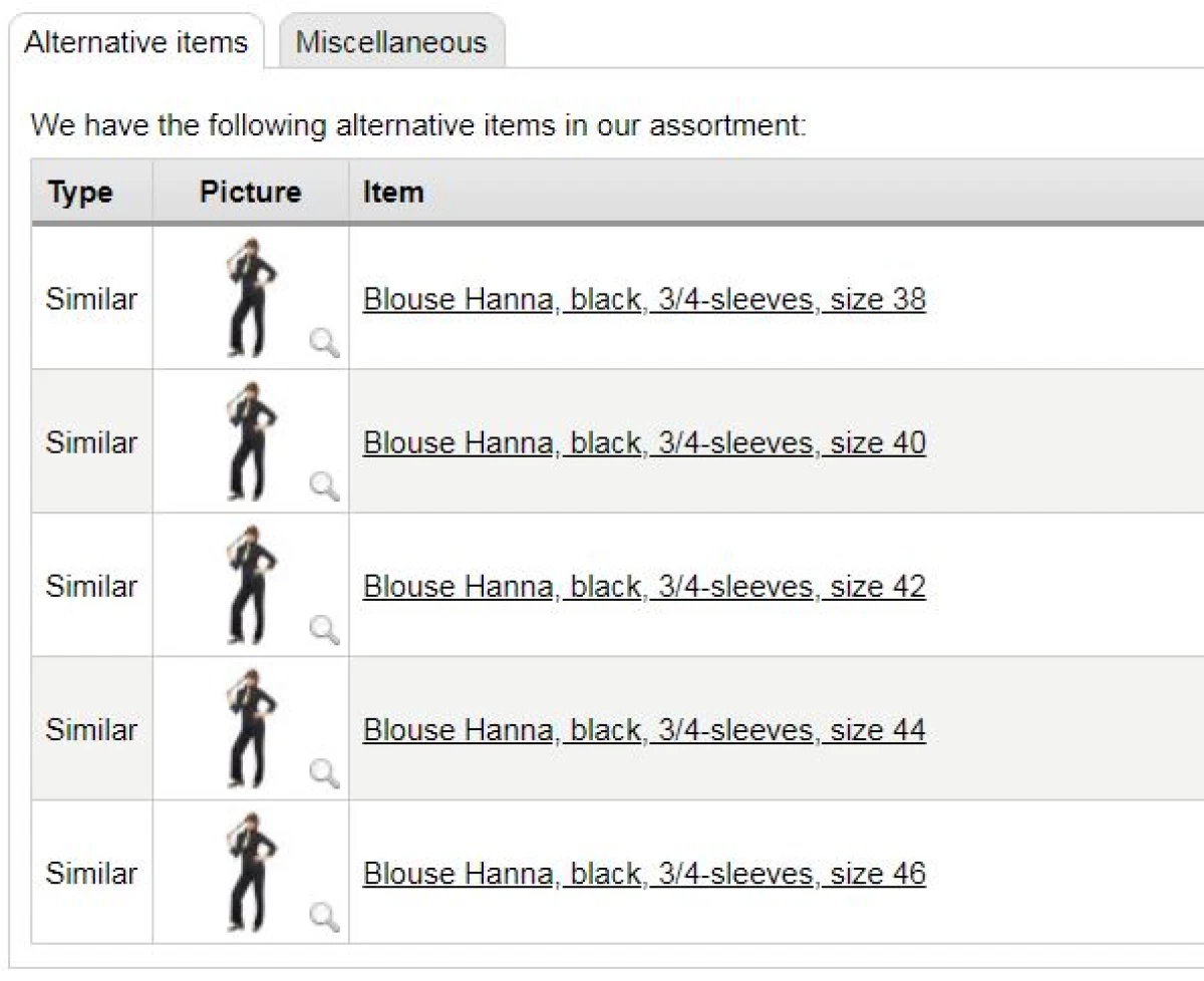 Using the information for reference items in the field ARTICLE_REFERENCE, you can refer to alternative items, accessories or other products.