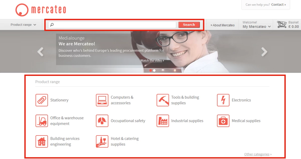 Using the search bar, simply fill in the desired search term, such as a product name, keyword, brand, manufacturer’s number or EAN code and all relevant search results will appear. Alternatively, you can click on the various categories (e.g. Stationery) and subcategories to find the desired product.