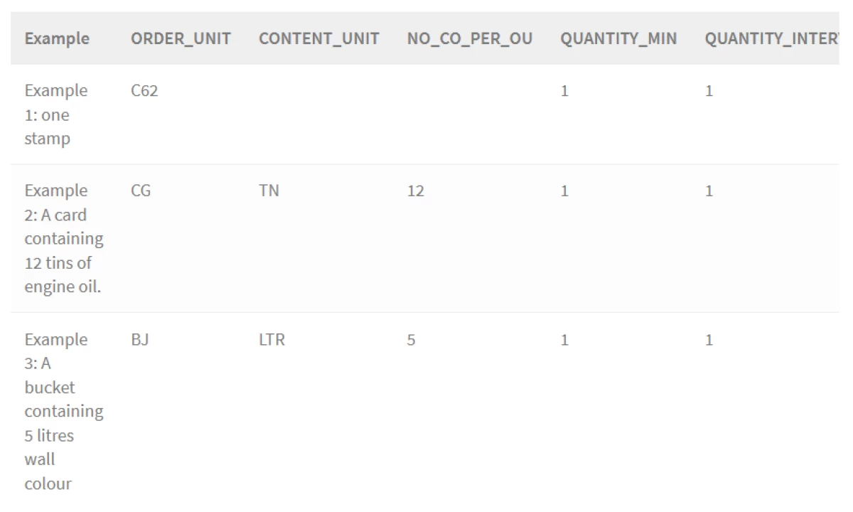 ORDER_UNIT is the smallest unit of a product that can be ordered. It is possible to order multiples of the order unit.