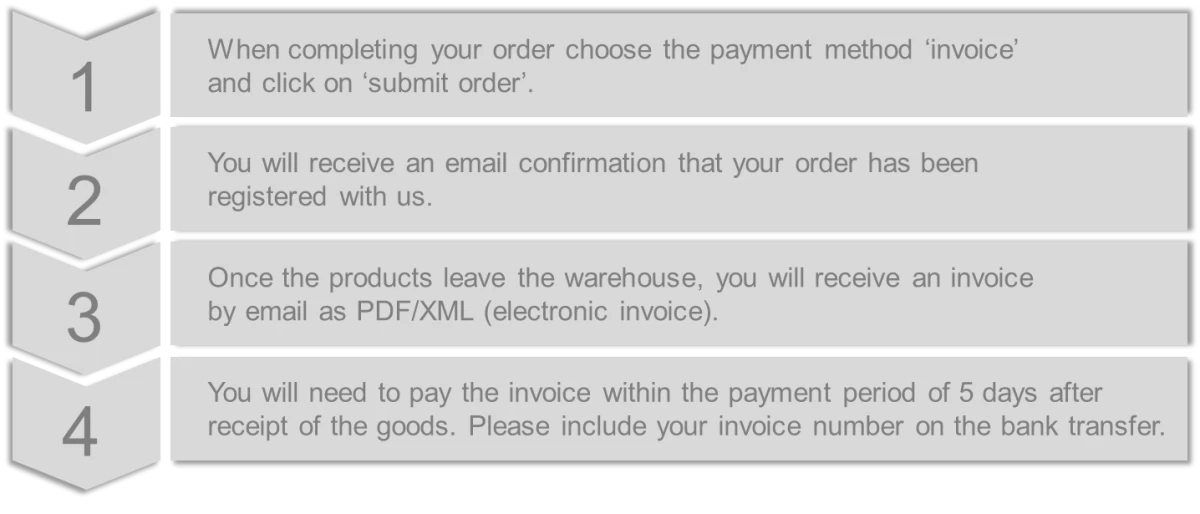 Depending on the creditworthiness of your company, you can pay on account after receipt of the goods. You will have to take the following steps: