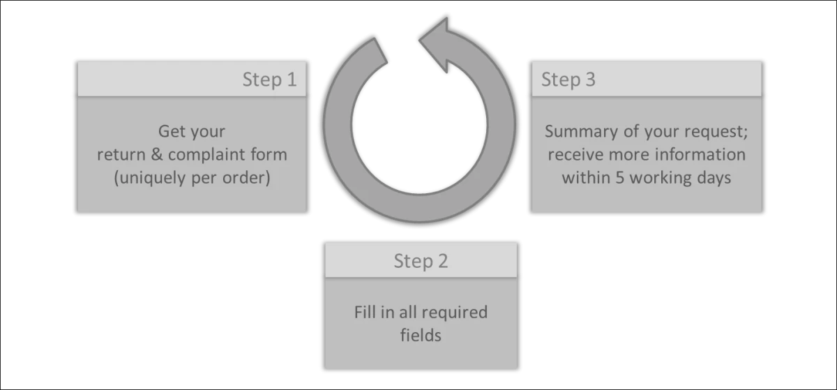 Step 1 – In your order confirmation email you will find a link to the return & complaint form. Click on the link. This link is uniquely per order!