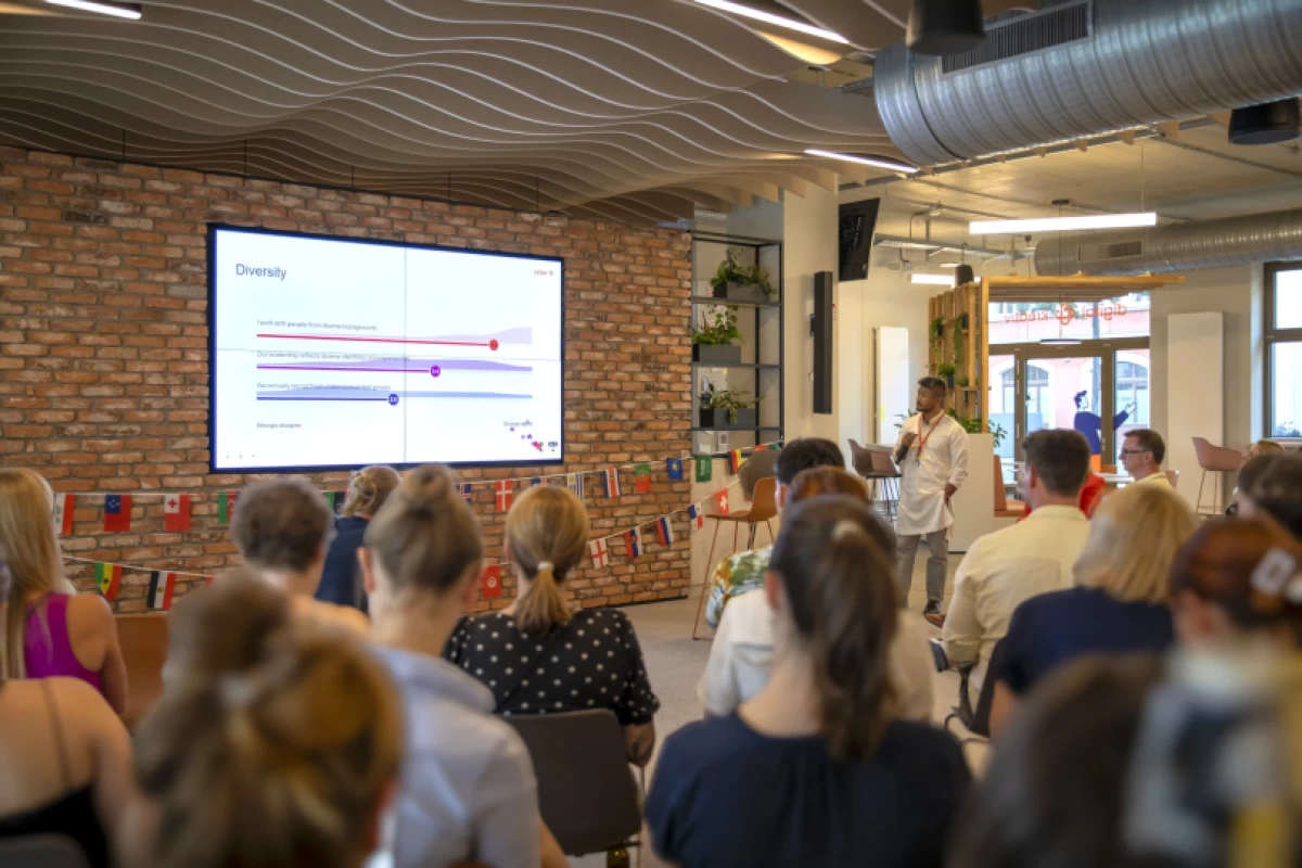 A live Mentimeter quiz offered a quick, anonymous pulse check to understand how Unitees perceive DEI in the workplace. With an average score of 3.3 out of 5, here’s what it means: