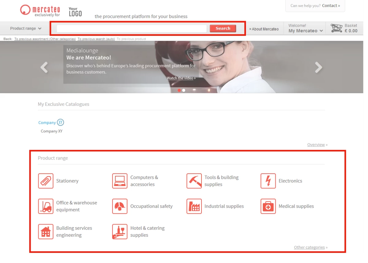 Using the search field, simply fill in the desired search term, such as a product name, keyword, brand, manufacturer's number or EAN code and all relevant search results will appear. Alternatively, you can click on the various categories (e.g. Stationery) and subcategories to find the desired product.