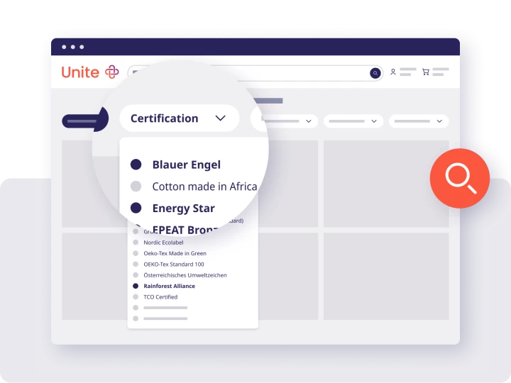 Unite offers a selection of 3.2 million products with qualified environmental and social certifications.
