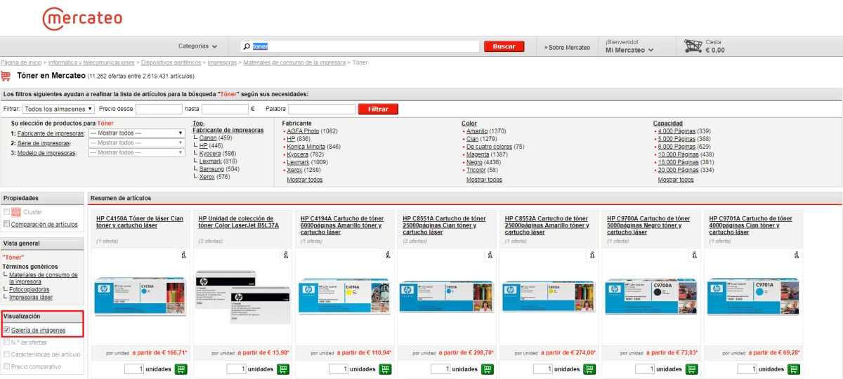 Puede visualizar sus resultados en modo lista, como viene por defecto, o como galería de imágenes. Si prefiere ver las fotos de sus resultados con un mayor tamaño, vaya a la casilla de la izquierda “Visualización” y marque “Galería de imágenes”.