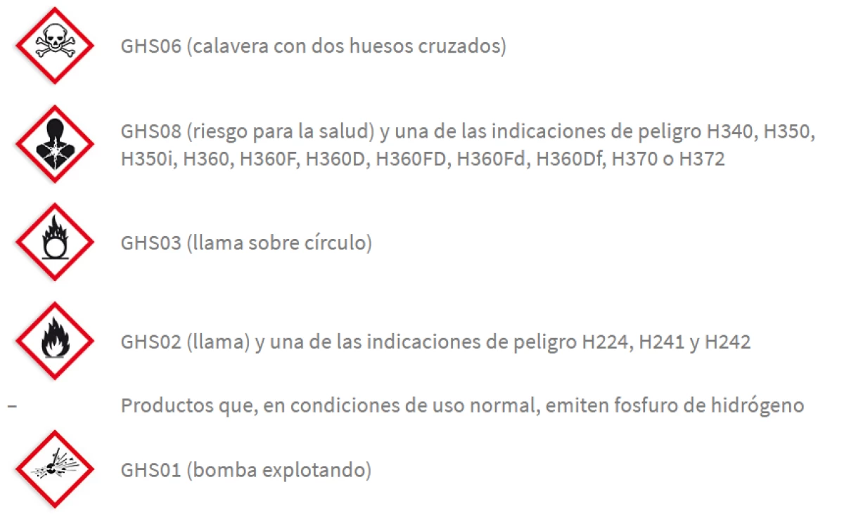 Es posible que los valores aparezcan combinados. Un mismo producto puede incluir un máximo de 4 pictogramas al mismo tiempo.