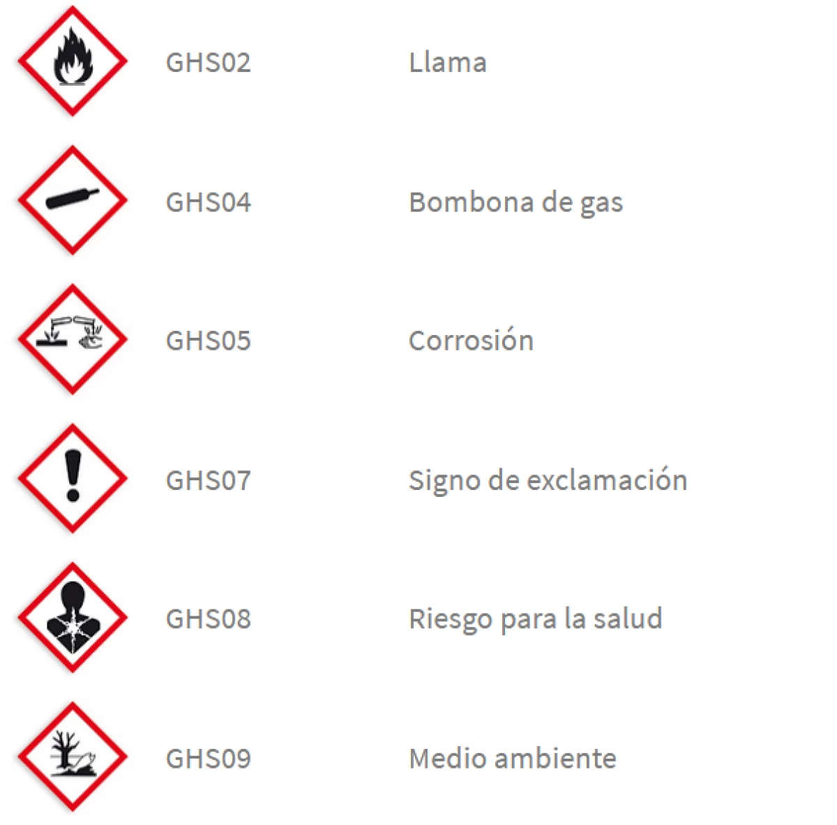 Tabla 2: Pictogramas y valores de la normativa GHS