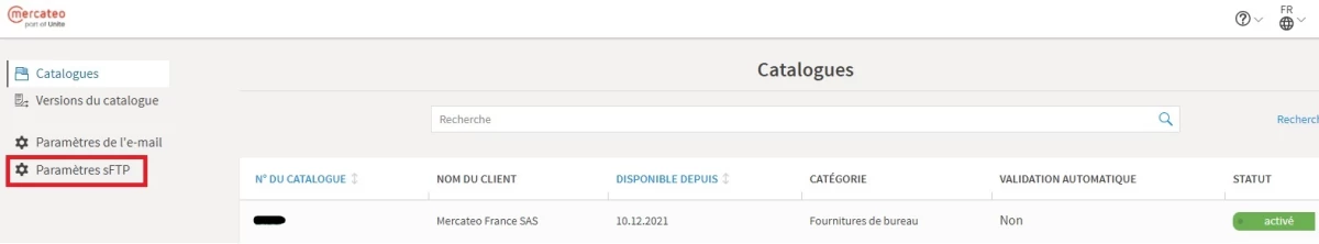 Veuillez vous connecter au Catalogue Management Tool, puis cliquez sur Paramètres sFTP :