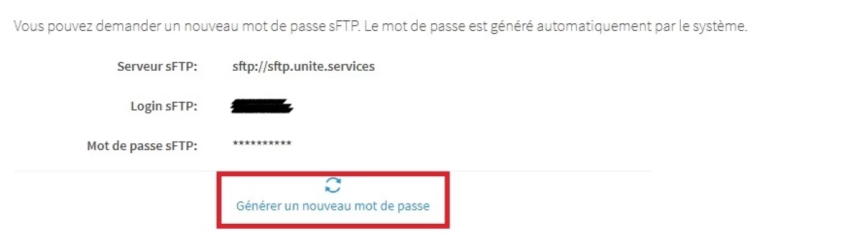 Votre compte n'a pas encore été basculé de FTP à sFTP. Dans ce cas, veuillez nous contacter par e-mail à l'adresse support@unite.eu.