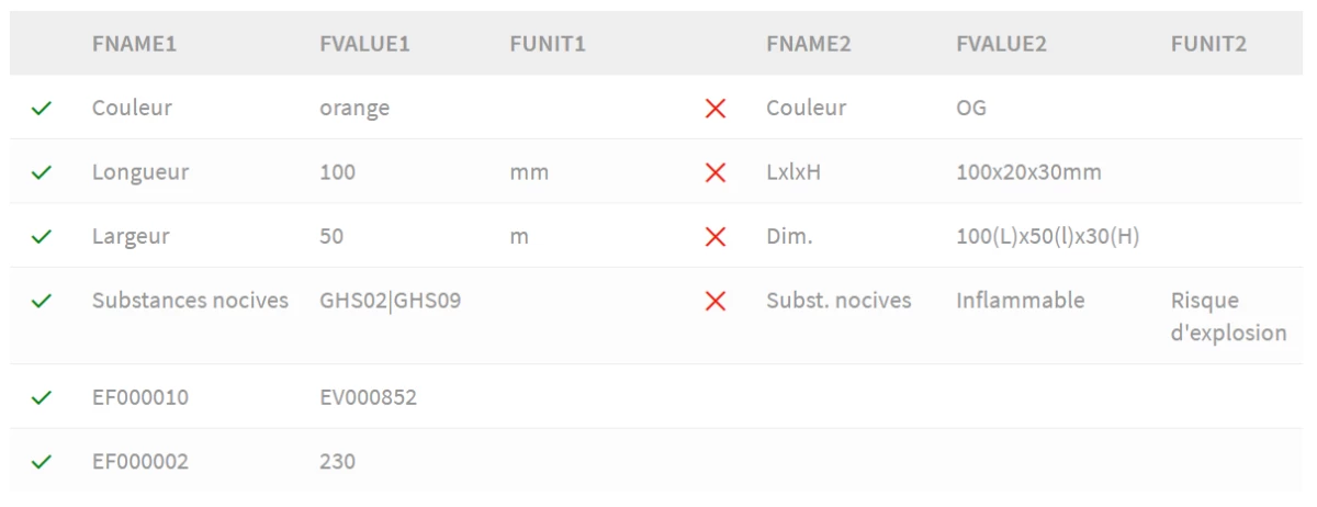 Si les produits contiennent des substances dangereuses, vous êtes tenu de les marquer avec les codes SGH de l'UE. Vous pouvez lire comment faire sous la rubrique "FNAME / FVALUE / FUNIT (1-25)".