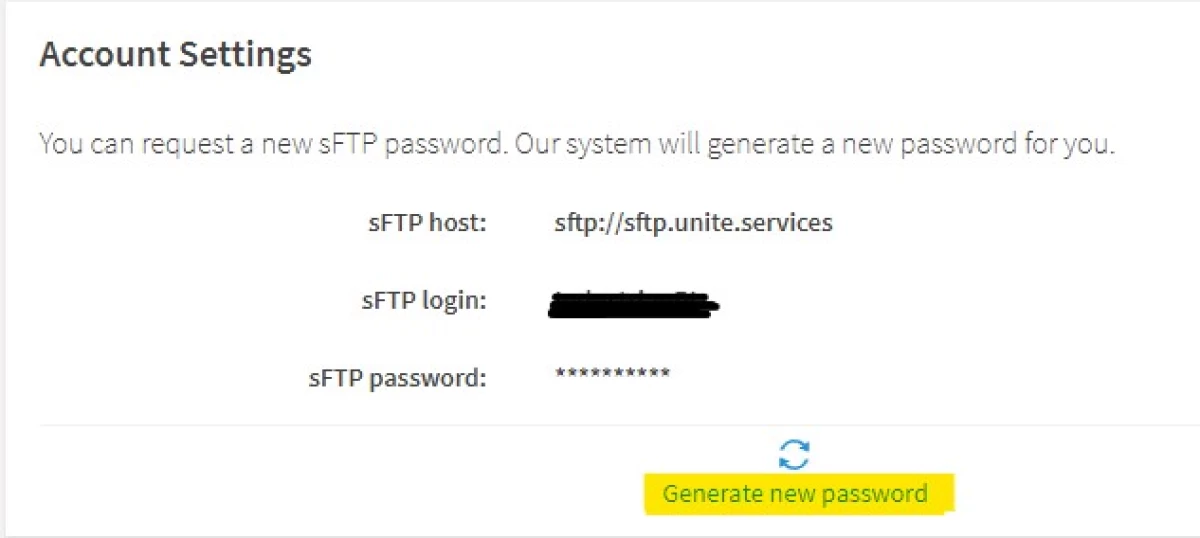 ATTENZIONE: Per motivi di sicurezza la password verrà visualizzata solo una volta. È quindi importante copiare e salvare la password e conservarla per gli accessi futuri all’sFTP. Se viene persa, è necessario ricreare una nuova password.