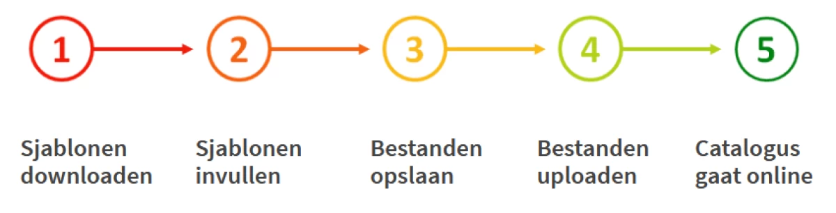 Naast foto’s (JPG of GIF), datasheets en/of veiligheidsinformatiebladen (PDF) bestaat een catalogus altijd uit een categoriserings- en een productbestand. Een Excel sjabloon voor deze twee bestanden download u hier:
